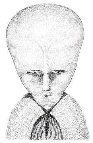 In 1918 Crowley engaged in a magickal (his preferred spelling) exercise dubbed ‘The Amalantrah Working’, during which, under the influence of hashish and mescaline, he purportedly established contact with an otherworldly demonic “Enochian Entity” named Lam. Crowley drew a portrait of Lam, which for many years just seemed the insignificant scribble of a drug-addict – until, in 1987, U.S. sci-fi novelist Whitley Strieber published his bestselling autobiography Communion, detailing his alleged status as an alien abductee at the hands of a band of rather queer-sounding anal probe-wielding bedroom invaders.