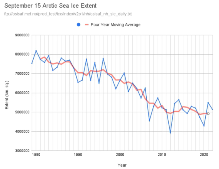 The arbitrary 1979 starting point when artic sea ice was at a high after a cold 2 decades. Also an appeal to Tobes to stop spouting rubbish from the idiot Peter thiel on the DS podcast. Given the energy price in the UK is 44p a kWh and 6/7p in Russia/china there is obviously massive scope to turbo charge the UK economy by scraping net zero. The productivity gained from privatisation has been undone by ivy like bureaucracy, but that can be easily undone. Tobes please think about things before quoting them as gospel when they are obvious bs.