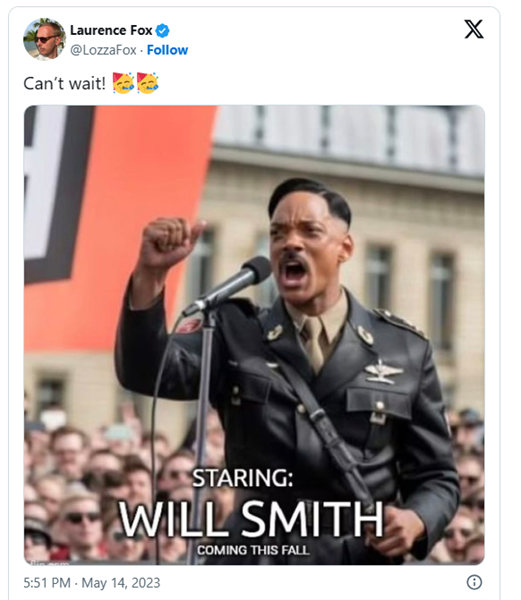Fortunately, some wicked white sceptics are now finally beginning to notice the existence of this linguistic obscenity and registering their objections. The flimsy logic of activists like Britt Hawthorne is all too easily satirised via the spread of absurdist fake memes like the following, supposedly showing the unexpected casting of Will Smith as Hitler in the (sadly non-existent) new Netflix biopic series Adolf, as yet another means of making the Global Majority feel oh-so-at-home in all those nations where they still as yet unfortunately make up a local minority, like 1930s Nazi Germany: