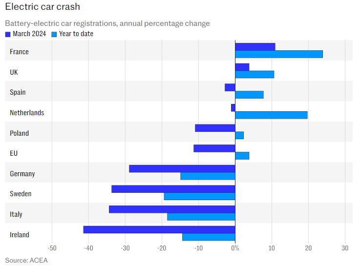 Electric is fine and dandy for the short local journey, but should you decide to head off for the hills, forget it. And hence demand has dried up. Tesla is making 14,000 workers redundant. In March, German sales of electric cars collapsed by 30%. You can’t give a second-hand electric car away in the U.K.