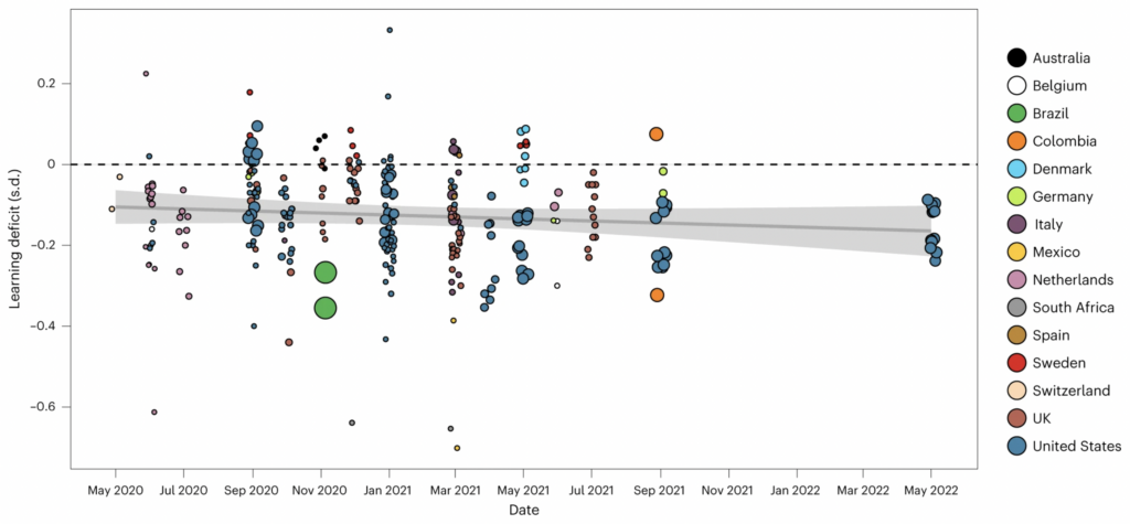 Betthäuser and colleagues’ study is one of the most comprehensive and careful to date, and it basically confirms what we already knew: school closures came with major costs. What’s noteworthy is that, due to data availability, their sample of studies was skewed toward richer countries. Had it included more studies from poorer countries, the overall learning loss would have been even greater.