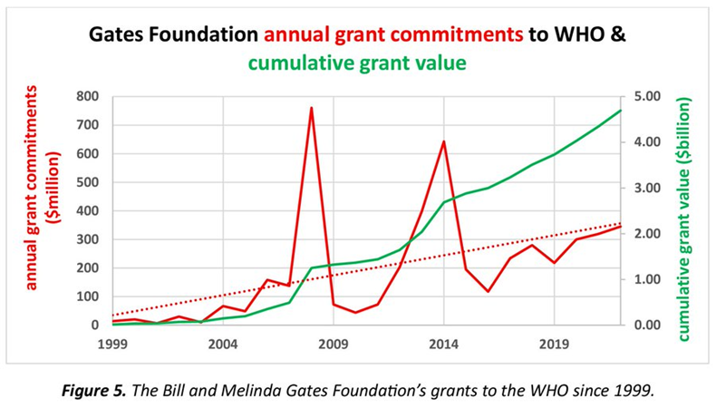 Like Kogon’s targets, I have also argued that Gates has undue influence in the world, achieved by his championing of a new model of philanthropy. Coincident with the unprecedented wealth developed by tech billionaires and hyper-accumulations of capital, the role of intergovernmental agencies, such as the WHO and, of course, NGOs and strange ‘civil society’ organisations, from the WEF to obscure green outfits, have also expanded. The problem, now widely observed, is that nominally democratic governments today seem to be entirely subservient to this new power network. In my Climate Debate U.K. and the Together Association report on air pollution politics, I point out that the BMGF has donated nearly $5 billion to the WHO since 1999, most of which has been given in the last decade.