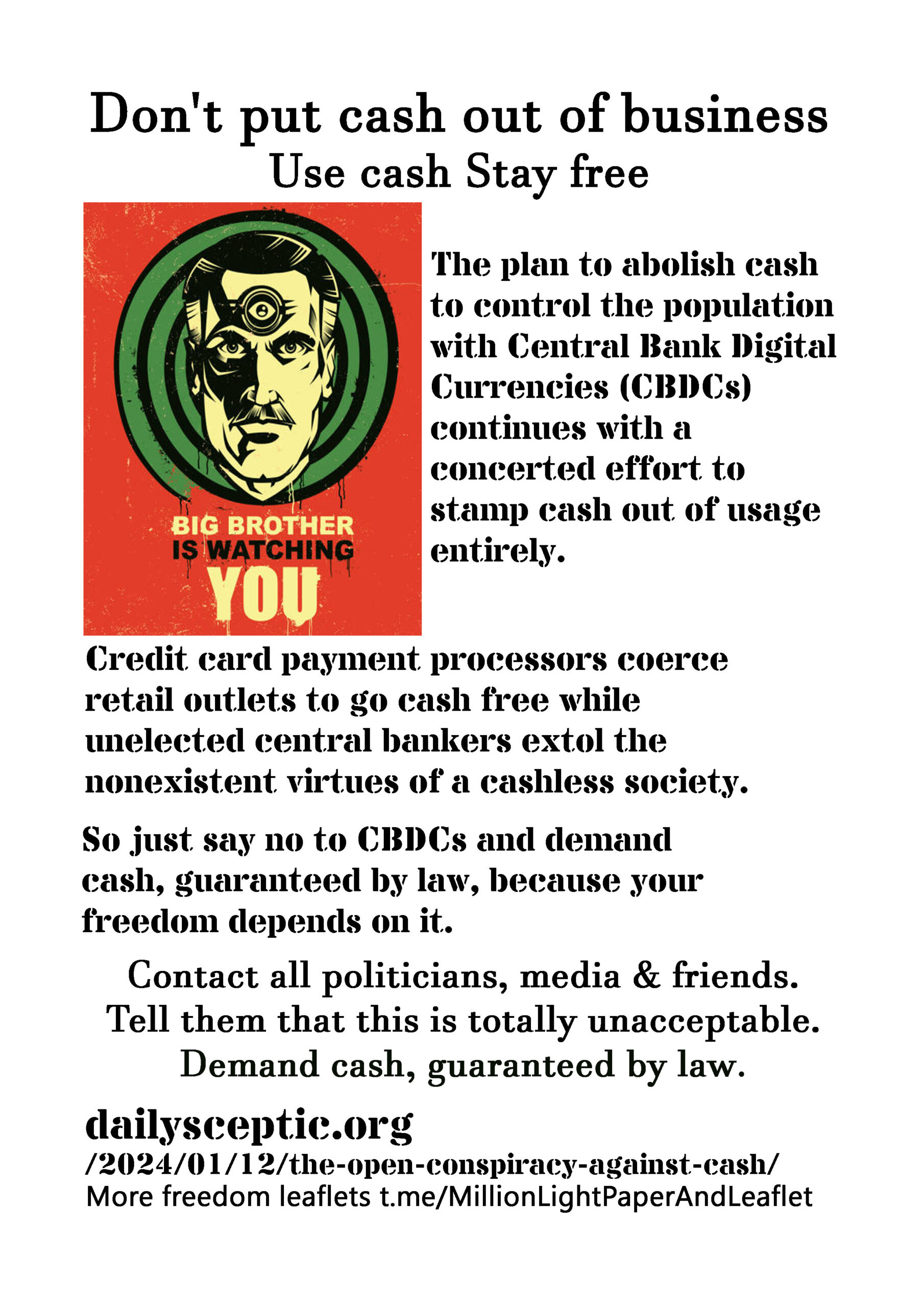Don’t Put Cash Out Of Business – latest leaflet to print at home and deliver to neighbours or forward to politicians, including your local Reform Party candidate, your local vicar, media and friends online.