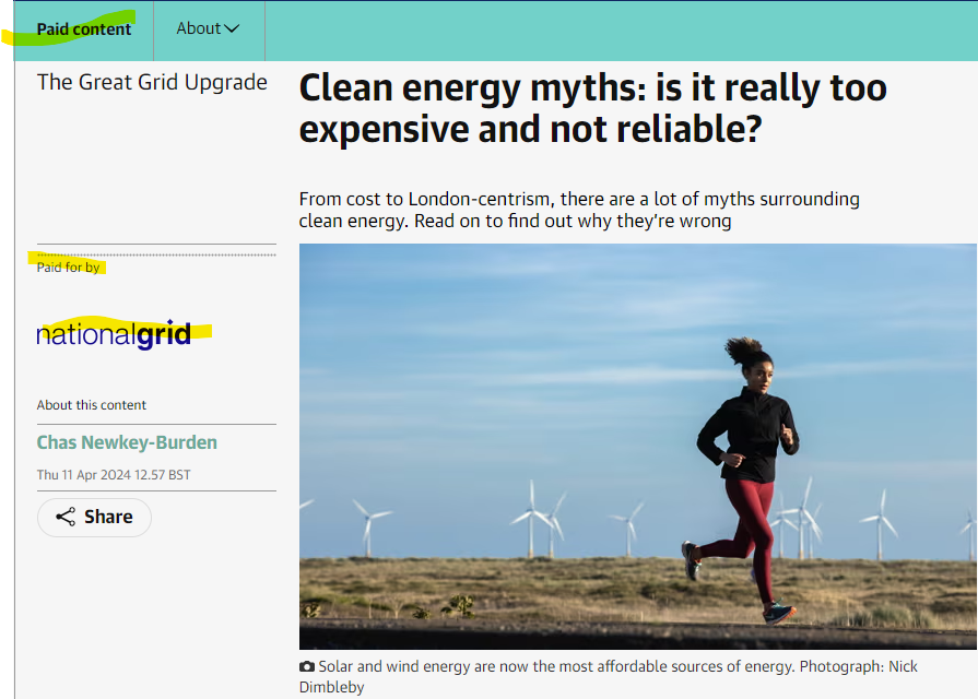 Regular readers of my Substack might recall that back in April, I wrote an article rebutting a blatant piece of propaganda that appeared in an advertorial in the Guardian, paid for by the National Grid.
