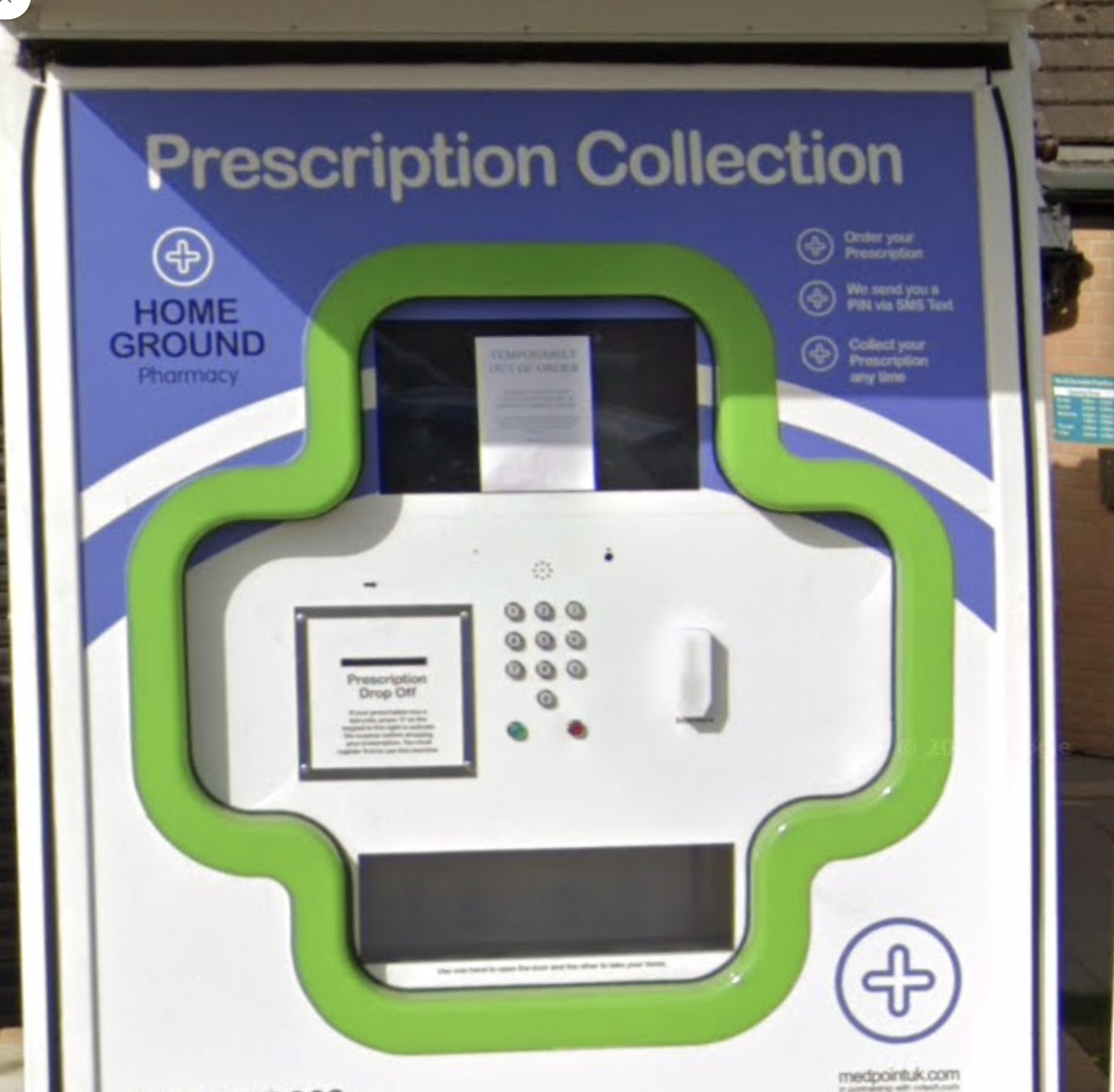 The local surgery cum pharmacy near to me now has an “automated prescription dispensing system”, which appears to operate a bit like an ATM for cash etc. No doubt it collects the latter, in effect. I haven’t used it yet, but no doubt it cuts the queue for repeat prescriptions. It’s mounted just next to a public footpath.