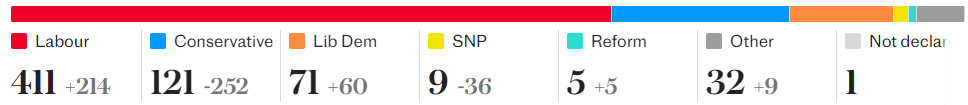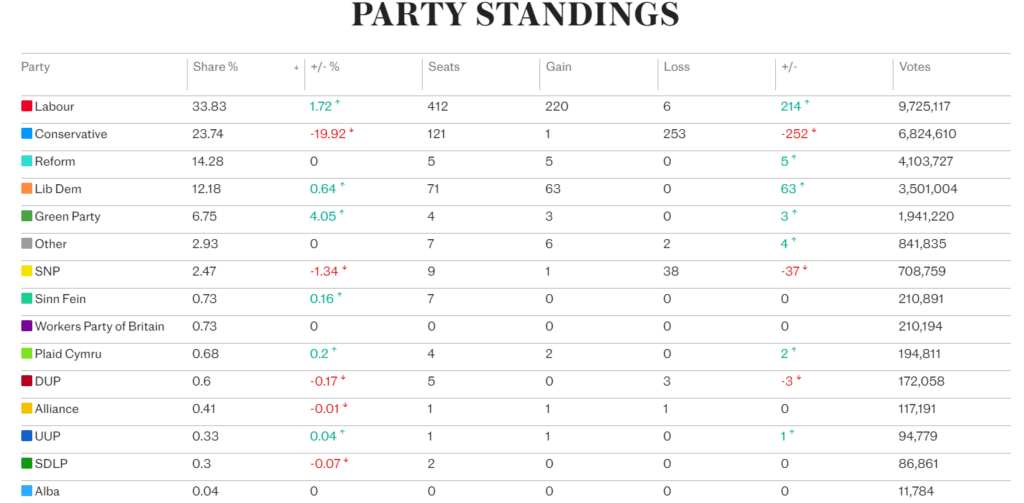 The results confirm how hard it is to achieve real change in a majoritarian voting system when voters are let down by the main parties and find themselves desperate for an alternative that the system is not designed to give them. The system has been broken this time mainly by the Conservatives spending 14 years making promises they had no intention of keeping because the party was packed with MPs who either didn’t really agree with the manifesto they were elected on or were unwilling in practice to do what was required to deliver it. What’s needed now is for a proper Right-wing movement to emerge from Reform and the Tories that is ready to capitalise on the inevitable failure of this new Labour Government when voters realise that it is no more willing or able to deliver what is necessary than the Tories were.
