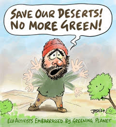 Perhaps it is not surprising that the Yale article tries to rain a little on the greening parade with a dose of climate gloom. Greening created by agricultural irrigation of fields can “obliterate arid-land ecosystems”. But this surely is human-caused and nothing to do with a changing climate. “Save the deserts” may not be a popular environmental message, “but arid eco-systems matter”, continues Yale. Of course there will be many who point out that if a few scorpions have to up sticks to make way for the better nutrition of millions of African children, this is a small price to pay.