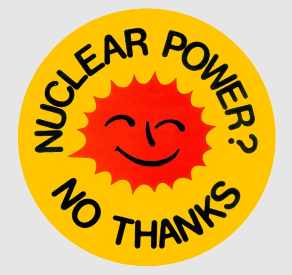 Below is a Nuclear Power No Thanks sticker which shows a smiley sun. This is a very obvious oxymoron.