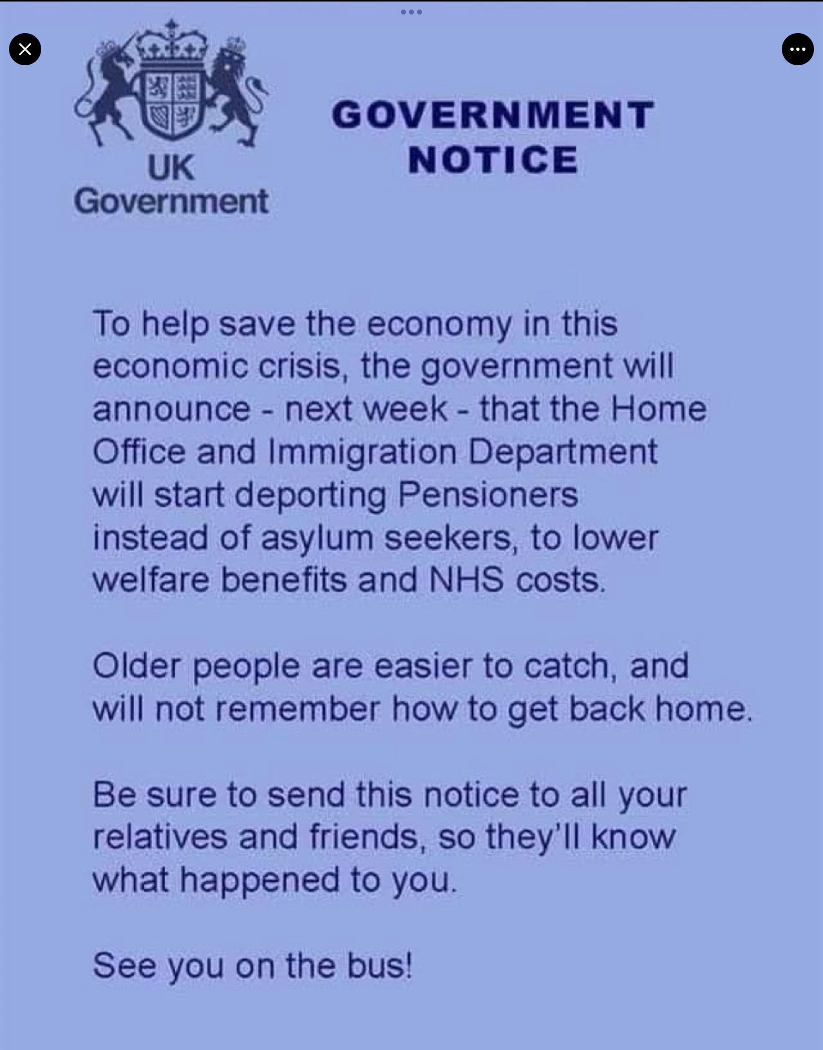 ”The cost of illegal immigration is £6.6 billion. The number of pensioners in Britain is 12,600,000.