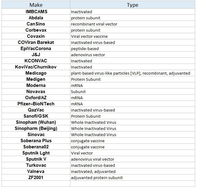 Below are all the vaccines/’vaccines’ that were developed for the Wuhan Flu. There were 28. The UK used three different mRNA variants and China used six virus based vaccines. China used no mRNA ‘vaccines’.