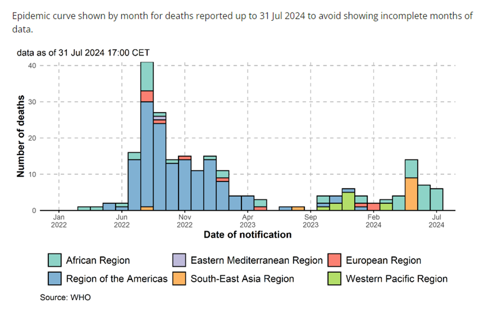 The World Health Organisation (WHO), tasked by countries to help coordinate international public health, has just proclaimed Mpox (monkeypox) an international emergency. It considered a new outbreak in the Democratic Republic of Congo (DRC) and nearby Central African countries to be a global threat, requiring an urgent global response. In declaring its emergency, the WHO stated there were 537 deaths among 15,600 suspected cases this year. In its August 19th Emergency Meeting on Mpox, the WHO clarified its figures: