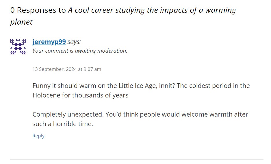 To check the comments on that particular article you can visit https://blog.metoffice.gov.uk/2024/09/10/a-cool-career-studying-the-impacts-of-a-warming-planet/