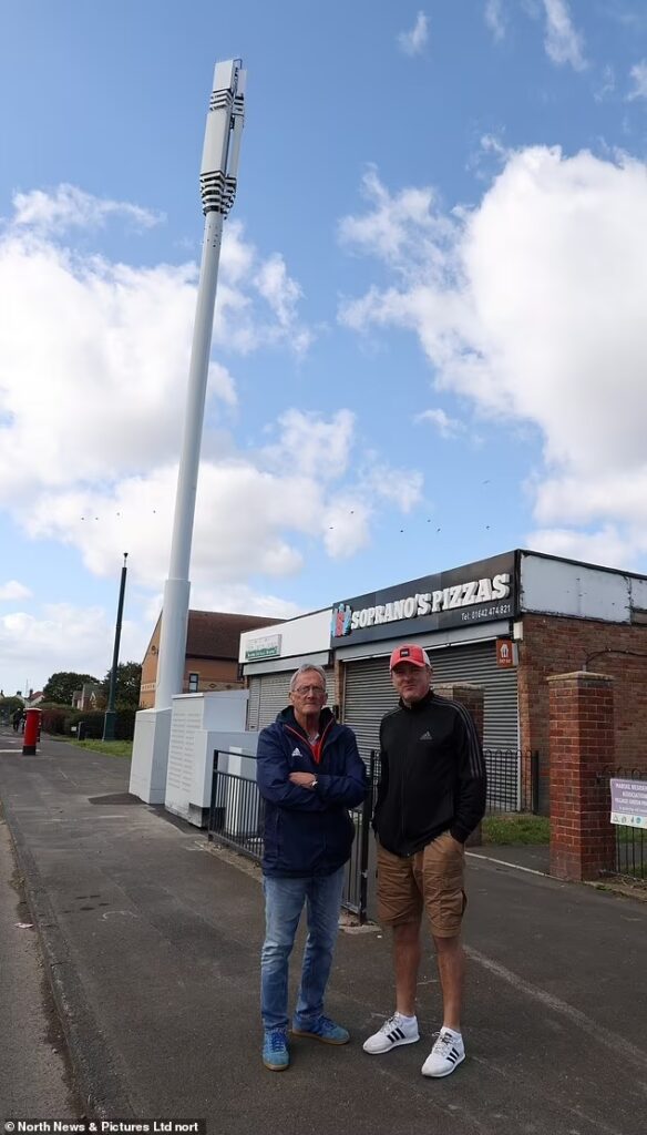 However her protest was futile and the mast has now towered above homes and shops in affluent Marske-by-the-Sea, North Yorkshire, since mid-August.