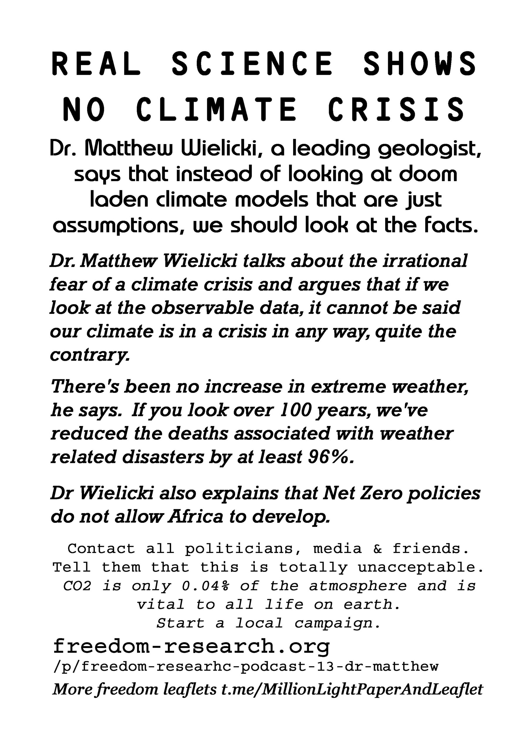 Real Science Shows No Climate Crisis – latest leaflet to print at home and deliver to neighbours or forward to politicians, your new MP, your local vicar, online media and friends online.