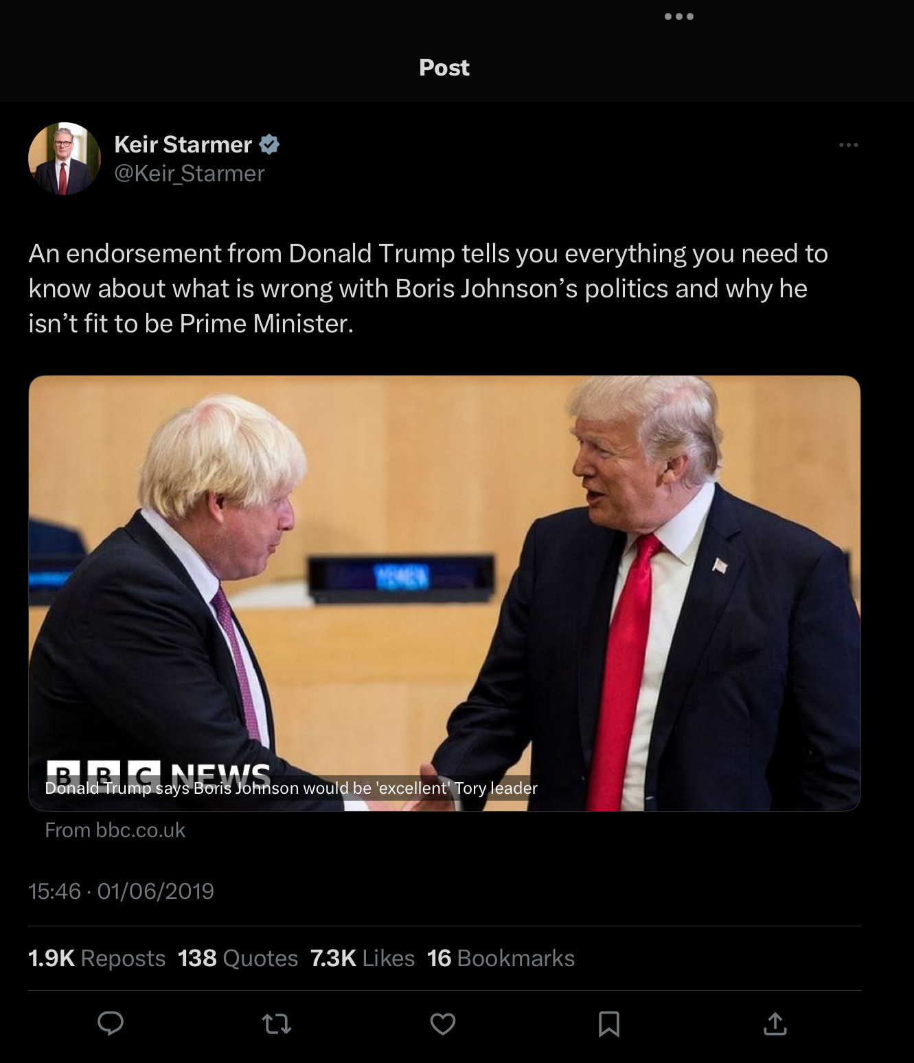 And Starmer made the attached post.