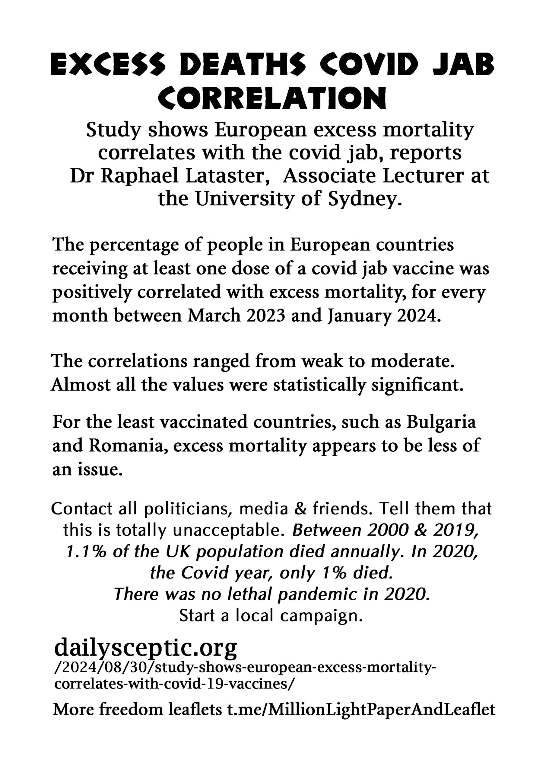 Excess Deaths Covid Jab Correlation – latest leaflet to print at home and deliver to neighbours or forward to politicians, your new MP, your local vicar, online media and friends online.