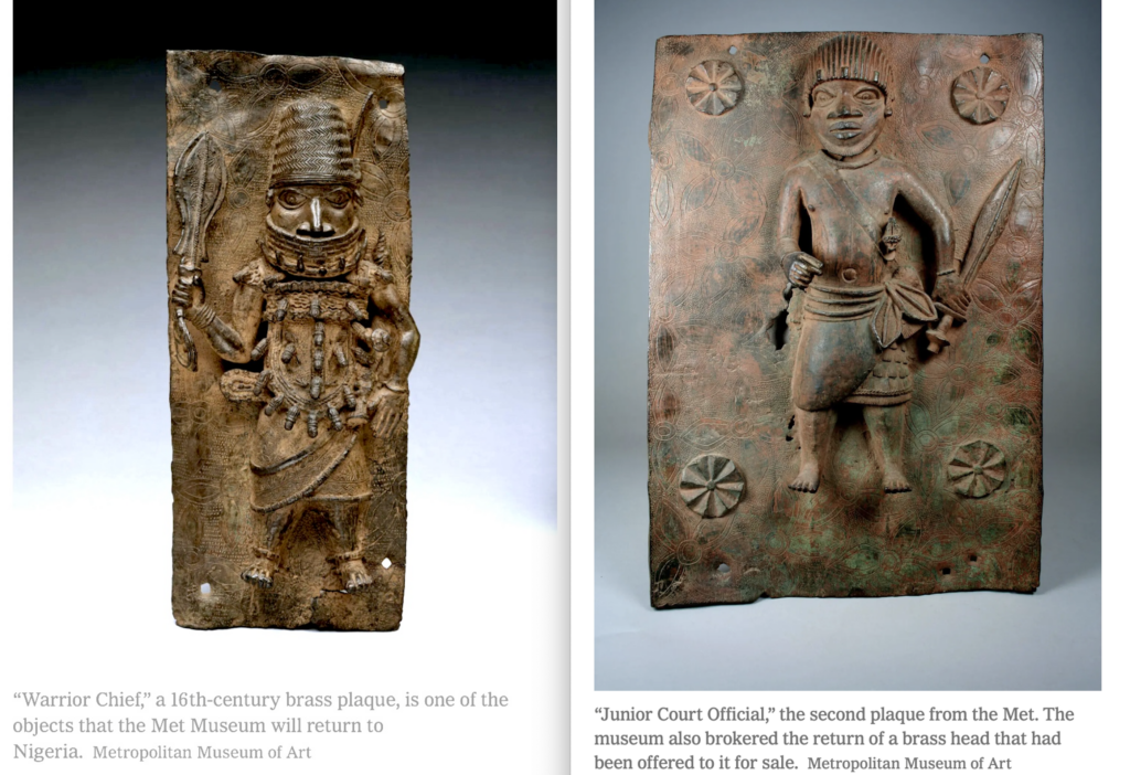 From 1991-2021, New York’s Metropolitan Museum held two Benin bronze plaques, provided by the British to Lagos Museum around 1951. After independence in 1960, they were looted by Nigerians and resurfaced in the USA. As Barnaby Phillips wrote in the second edition of his book Loot, the Met ignored his information until the first (2021) edition appeared, then caved in and returned the bronzes – not to the British, but to the Nigerians. If they were now safe in the National Commission for Museums and Monuments’ museums in Lagos or Benin, they would be recorded today on Digital Benin, but they’re not – they’ve disappeared.