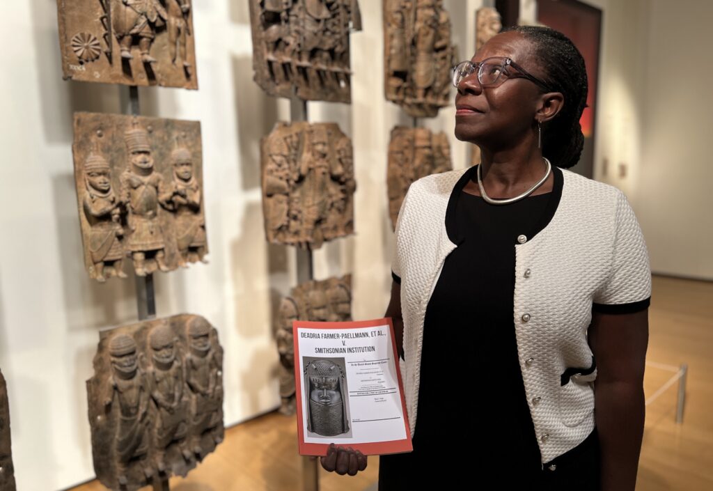 The above photo shows RSG director Deadria Farmer-Paellmann visiting the British Museum this month; she’s holding a copy of the Supreme Court petition and had been supposed to meet with a BM curator and a head of department on her visit from the USA – both were unavailable after all, one suddenly taking annual leave – to discuss the BM’s display captioning. Increasingly, museums are seeing the force of RSG’s arguments: that the brass manillas used to buy slaves and then cast the bronzes were “Blood Metal”; that the Obas of Benin were despots who enslaved other West Africans and either sold them to European traders or sacrificed them as ancestor-worship in appalling numbers.