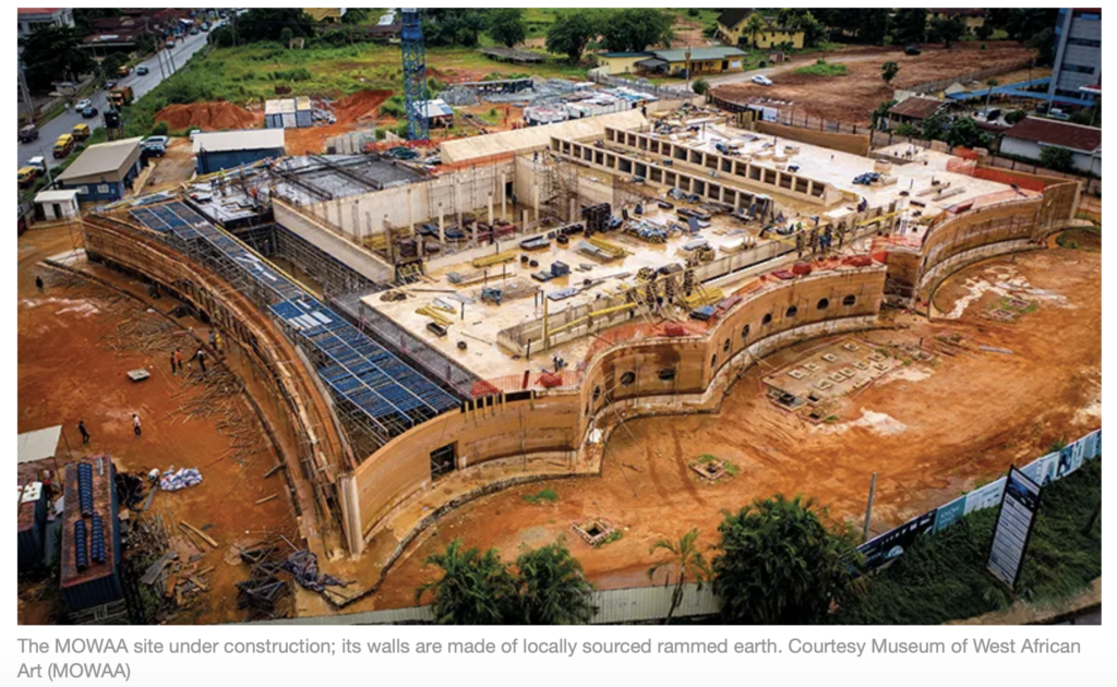 Museum professionals are heading to Benin in Nigeria for the inauguration on November 4th of MOWAA, the city’s new Museum of West African Art. Built largely of rammed earth, and with no collection to put in it, the museum in Nigeria’s capital of kidnapping is the curious outcome of a well-meant project.