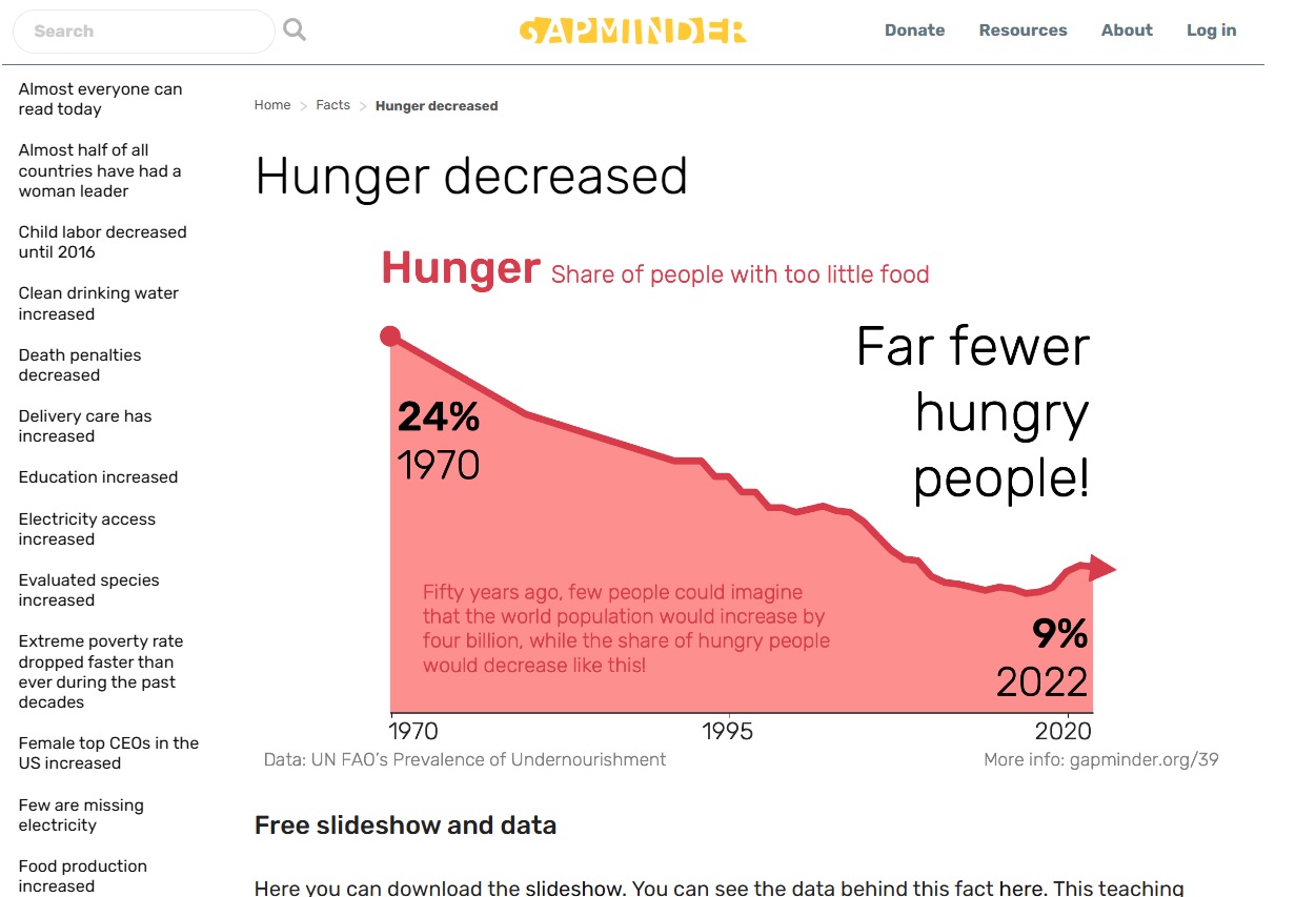 Hunger has been decreasing as well as poverty, globally (Where there are still issues is usually where there is either Marxist or Islamist) insurgency. The lowest life expectancy today is at least 15 years above the highest life expectancy 200 years ago. Almost 90% of the planet has access to electricity. These are good things. Have you heard of Trofim Lysenko?