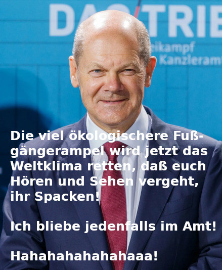 The much more environmentally-friendly pedestrian traffic light¹ is now going to save the climate until you can’t take it no more, you morons!