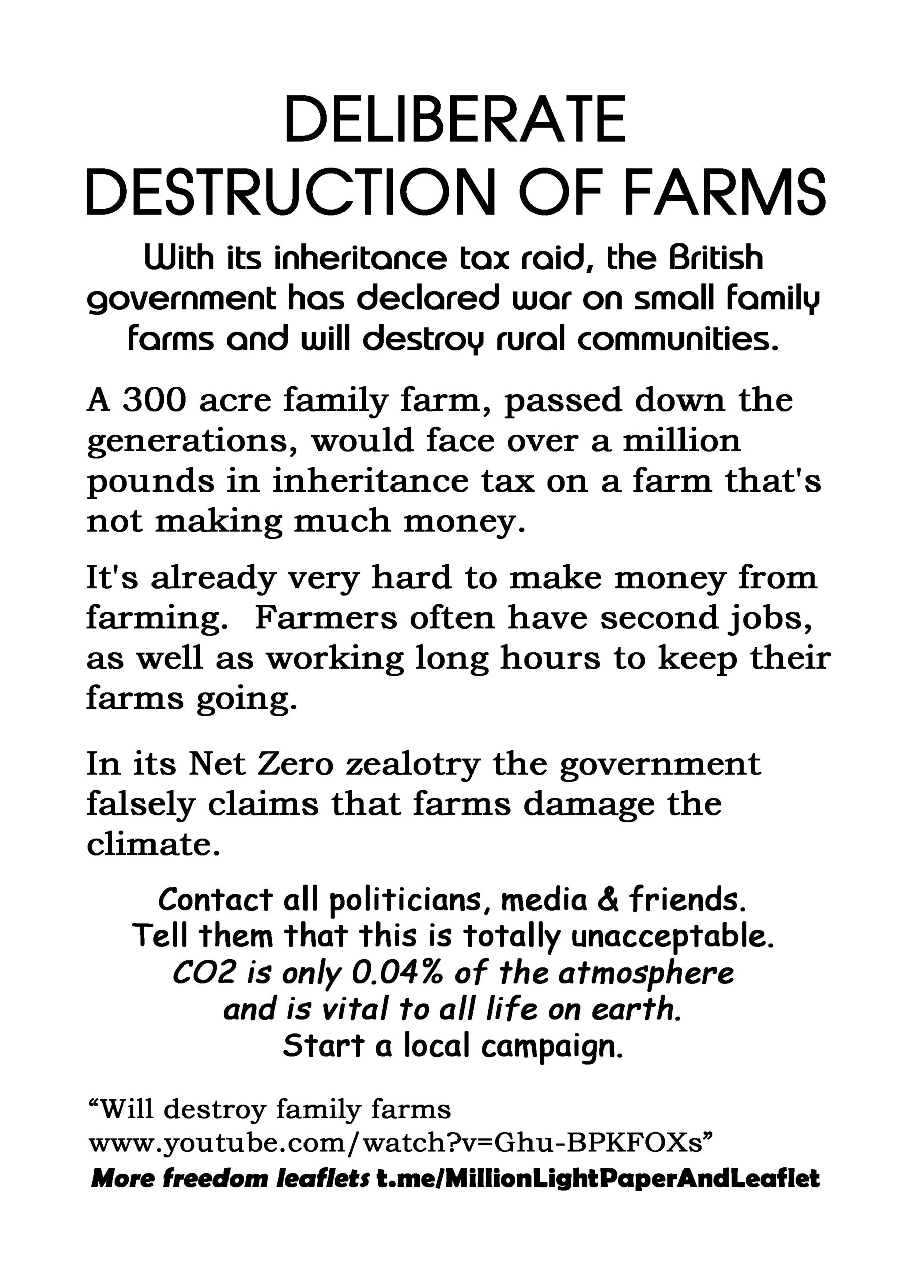 Deliberate Destruction Of Farms – latest leaflet to print at home and deliver to neighbours or forward to politicians, your new MP, your local vicar, online media and friends online.