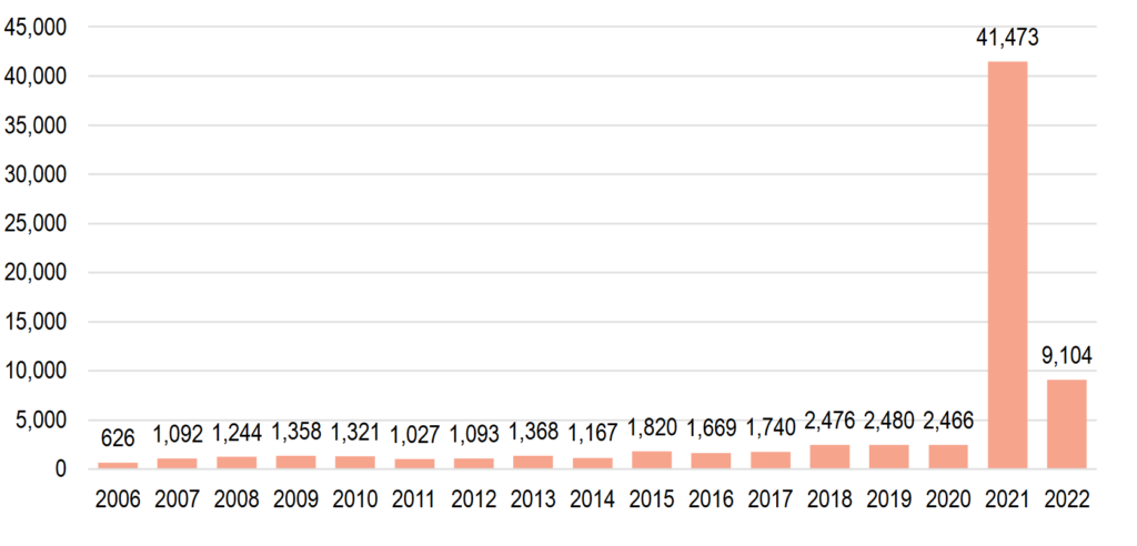 Now let’s look at the VAERS (Vaccine Adverse Events Reporting System) results for Florida from 2006 to 2022. Here’s a chart: