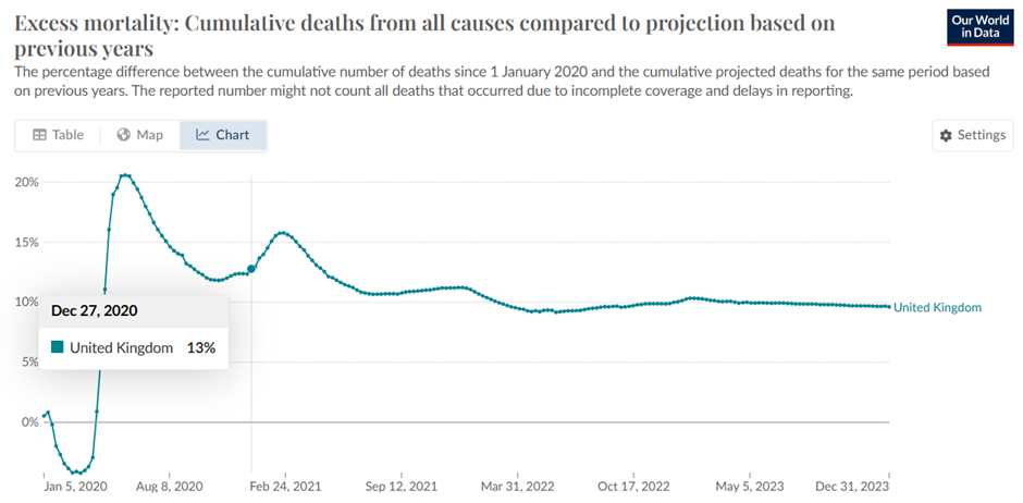 Instead of ‘excess’ it’s ‘more than expected’ death. How we calculate that is open to discussion.