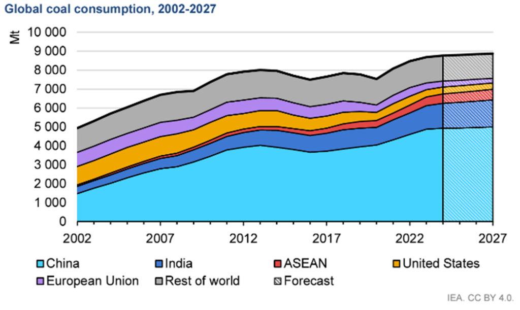 I love the optimism of the report, saying that global coal consumption will peak in 2024 then plateau. Sure it will!