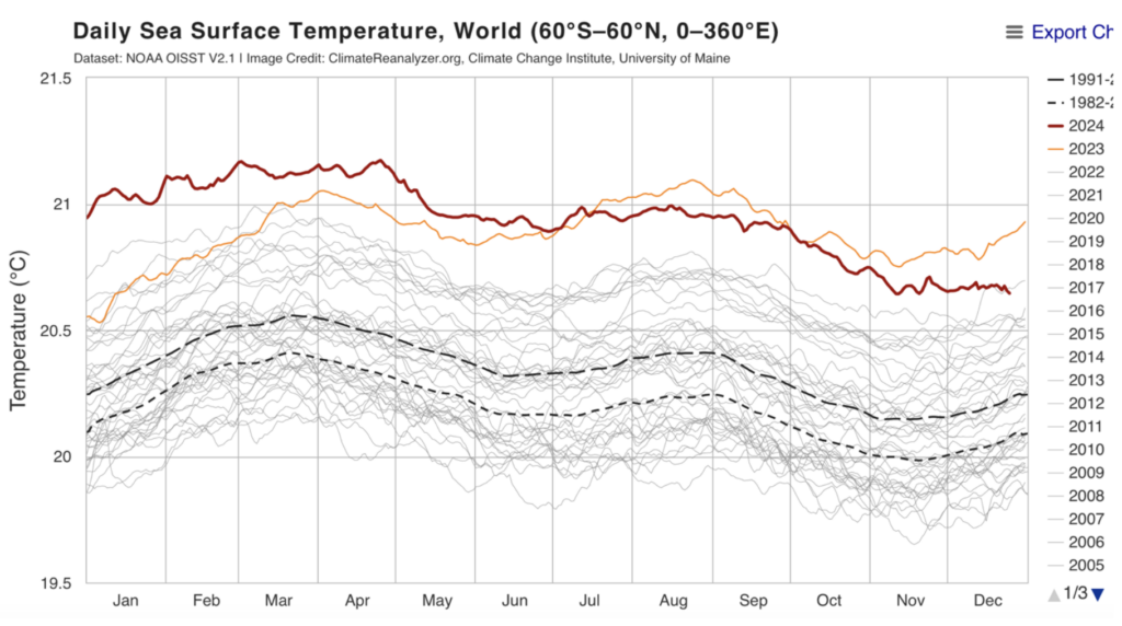 Stand by for another bout of ‘Hottest Year Evah’ stories as the mainstream media pursues its campaign to induce mass climate psychosis and prepare the ground for the oncoming Net Zero catastrophe. Alas, enjoy it only a little while longer since this story may have to be retired after putting in such a sterling propaganda shift. Global temperatures are falling like a stone, while the oceans are cooling at a remarkably rapid rate. In the U.K., the year is likely to show a second annual temperature fall since the alleged ‘record’ year in 2022.