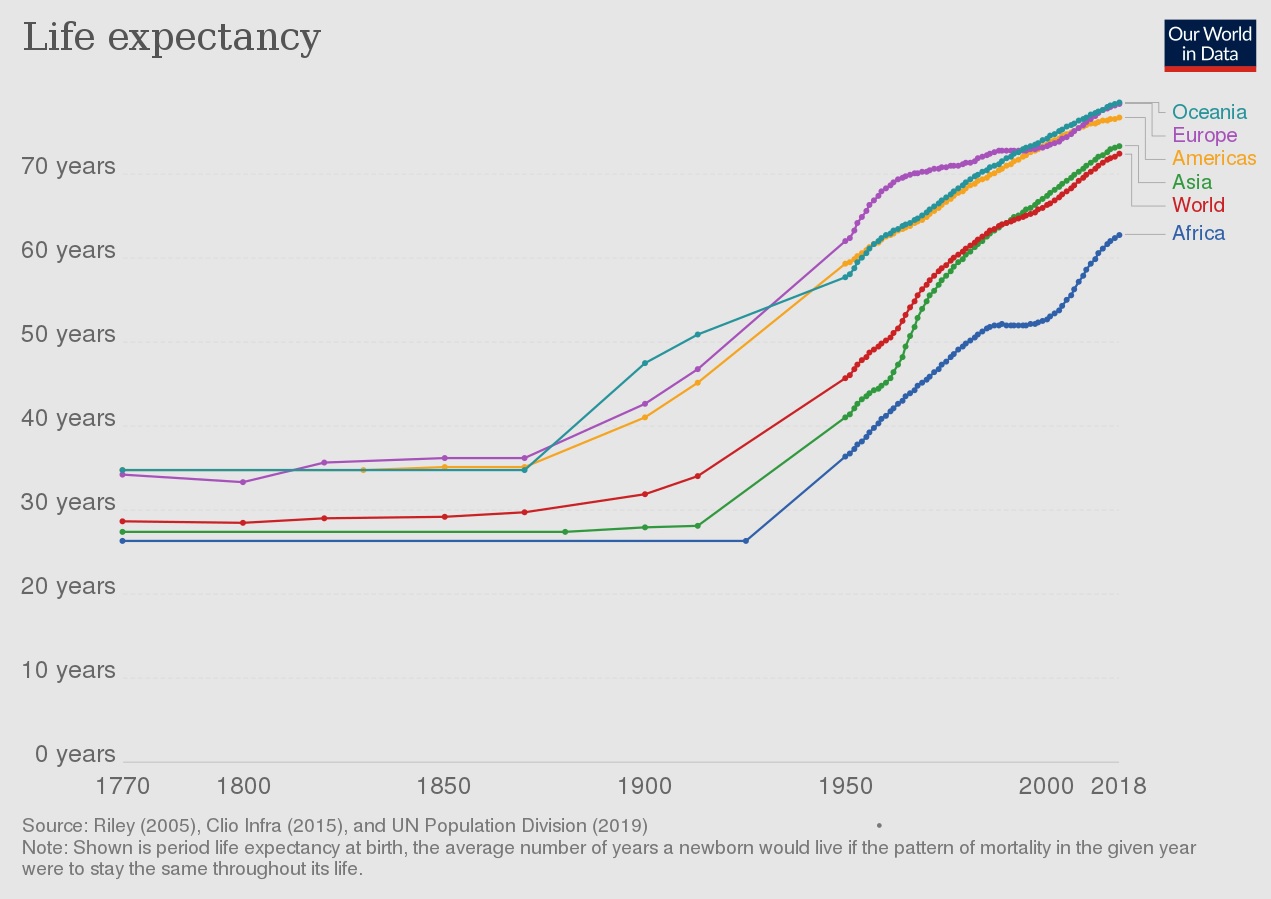 And below is a graphic showing global life expectancy over the last 200 years. There is no equivalent event anywhere in the history of life on earth and that covers a period of 3.7 billion years.