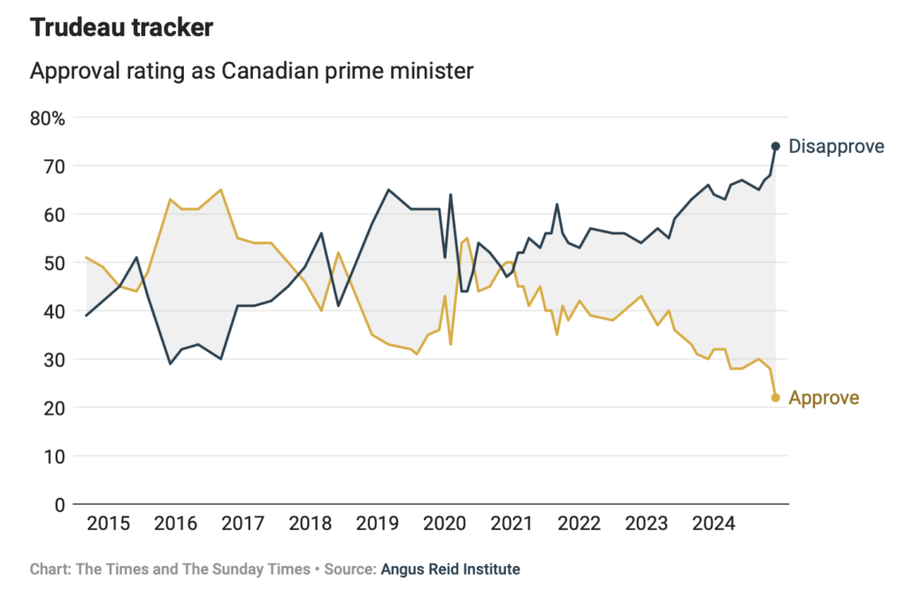 Stop Press: The political obituaries are flooding in – and they’re not good! Here’s Tom Leonard in the Mail (‘Canada’s ‘insufferable tool’ Justin Trudeau resigns’). Will post more here as they come in.