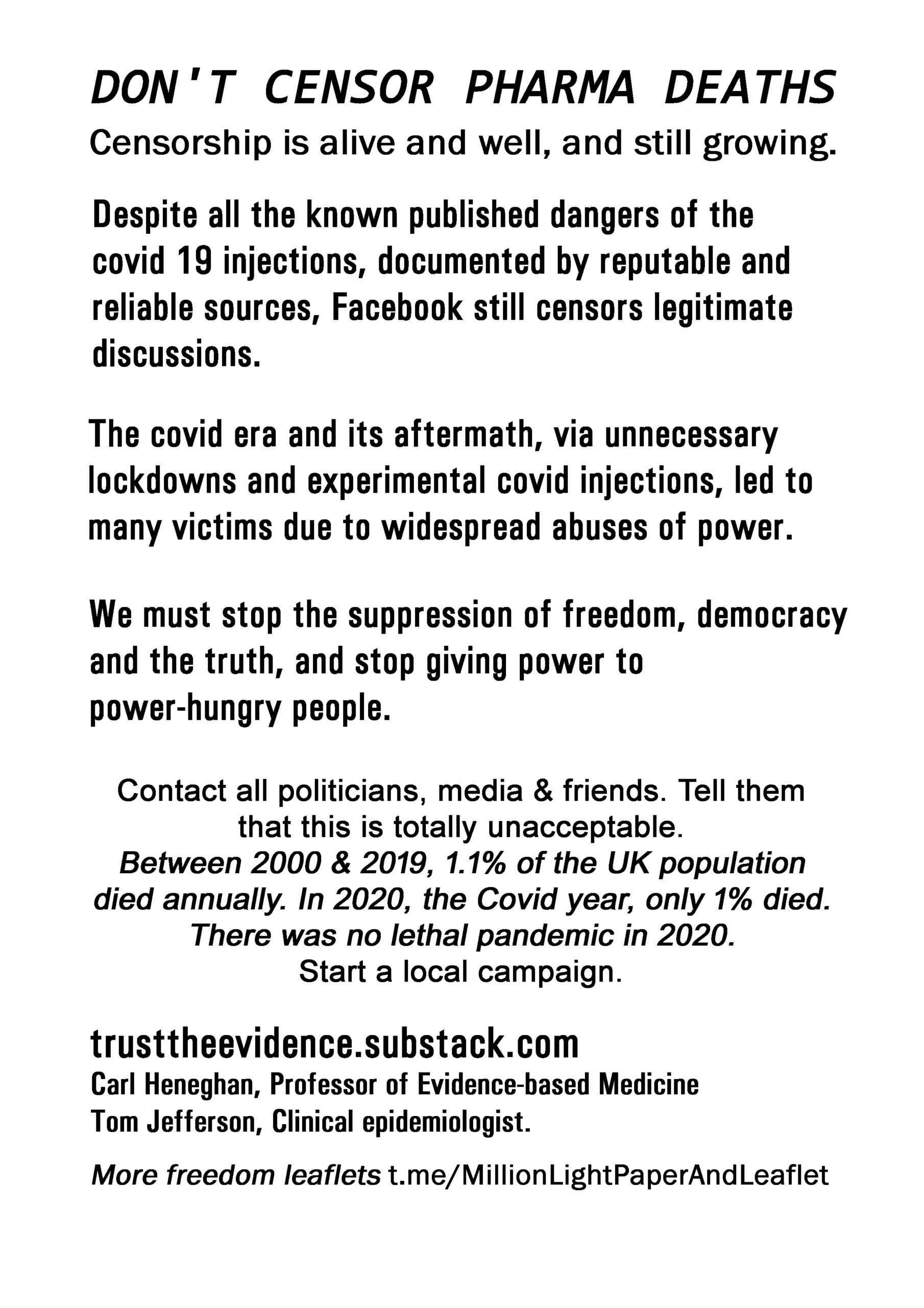 Don’t Censor Pharma Deaths – latest leaflet to print at home
