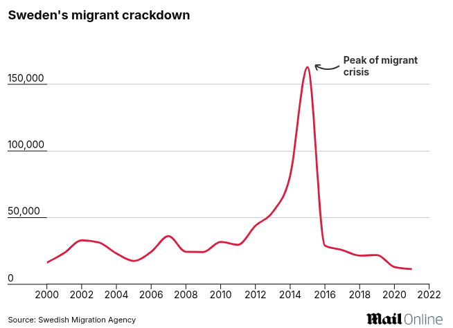 The current Government has also announced plans to offer immigrants $34,000 to leave the country, and to make it easier to expel migrants for substance abuse, association with criminal groups or statements threatening ‘Swedish values’.