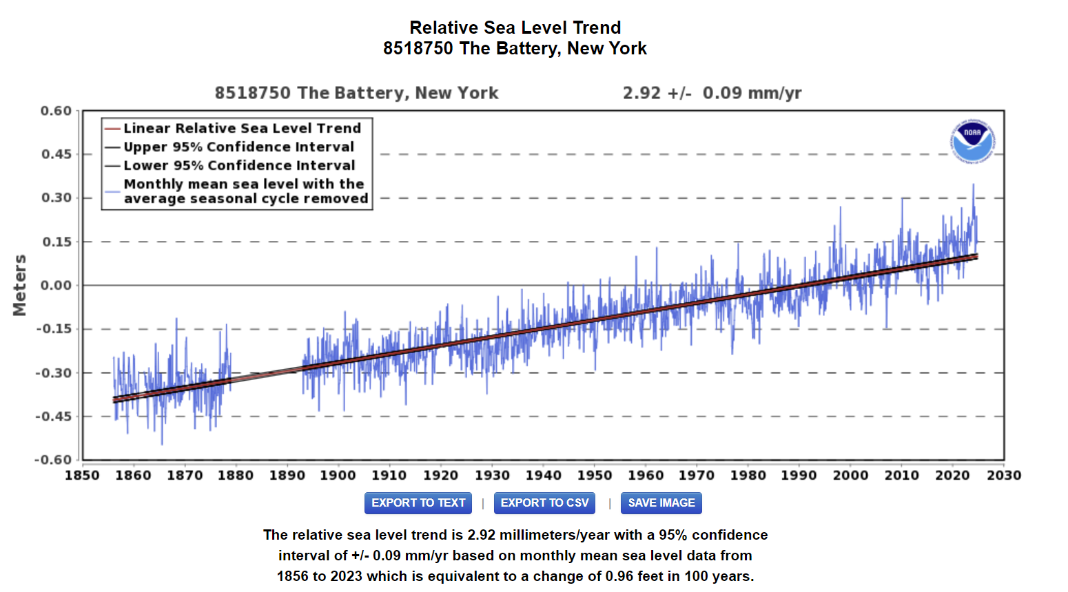 Here is the current sea level graph from NOAA – hardly apocalyptical.