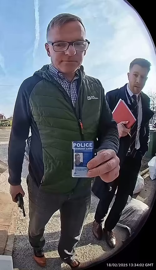 At around 1.30pm last Tuesday, while Mrs Jones was looking after her baby grandson at a nearby house, a detective sergeant and another officer knocked at her door and spoke to her husband Lee, 54, via an intercom.