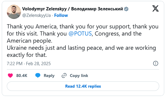 I didn’t see the full thing, only the few minutes that are being shared widely and that people are raving about, but this person did. Not sure if anyone else that watched it in its entirety can add anything or perhaps disagrees, as I’m aware a lot comes down to one’s individual interpretation, including biases, at the end of the day; ”I watched the entire press conference with Zelensky. There was 40 minutes of discussion up to the argument. Most people saw at most the last ten minutes. The whole video gives the proper context. When I first watched the argument without the proper context, I thought it was possible that Trump and Vance ambushed Zelensky or were even trying to humiliate him. That’s not what happened. You had 40 minutes of calm conversation. Vance made a point that didn’t attack Zelensky and wasn’t even addressed to him, and Zelensky clearly started the argument. In the first 40 minutes, Zelensky kept trying to go beyond what was negotiated in the deal. When Trump was asked a question, it was always “we’ll see.” Zelensky made blanket assertions that there would be no negotiating with Putin, and that Russia would pay for… Read more »