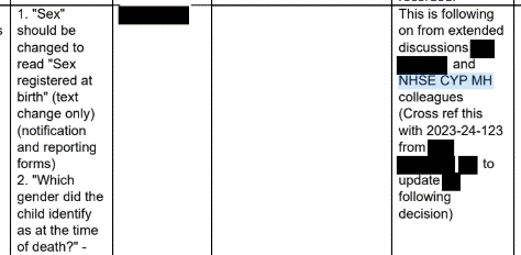Via a Parliamentary question in December, Baroness Hayter asked for the rationale for the change to child death reporting. She received a blow-off from Baroness Merron. “This was to capture the language used by young people and their families to improve system learning and to support the prevention of future deaths.”