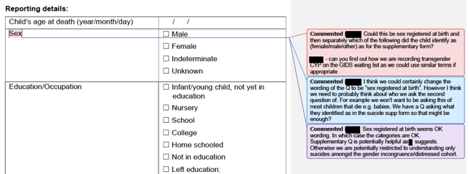 Here is what followed the email. First, this is the old Child Death Reporting Form capturing a ‘discussion by comment box’.