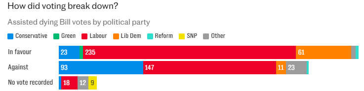 Long and protracted demise in prospect for the Assisted Killing Bill – Canadian equivalent now accounts for 3% of annual mortality.