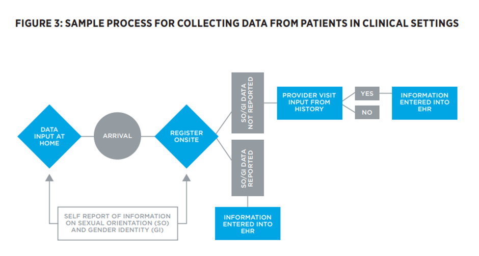 That is why the silly charts are perplexing. What are they for? I first pondered this when I came across this silly chart shared by the NHS. Considering the subjects of gender identity and sexual orientation, it shows you how a person attending a medical appointment might first share his or her personal data: at home, or at the front desk, or later on.