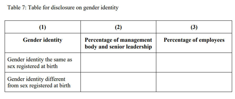 The Financial Conduct Authority ran an EDI consultation in 2023 wherein it suggested that firms across the entire financial services sector should collect staff’s gender identity on a voluntary basis, but with a view to making this mandatory (let that sink in). The consultation included this table: