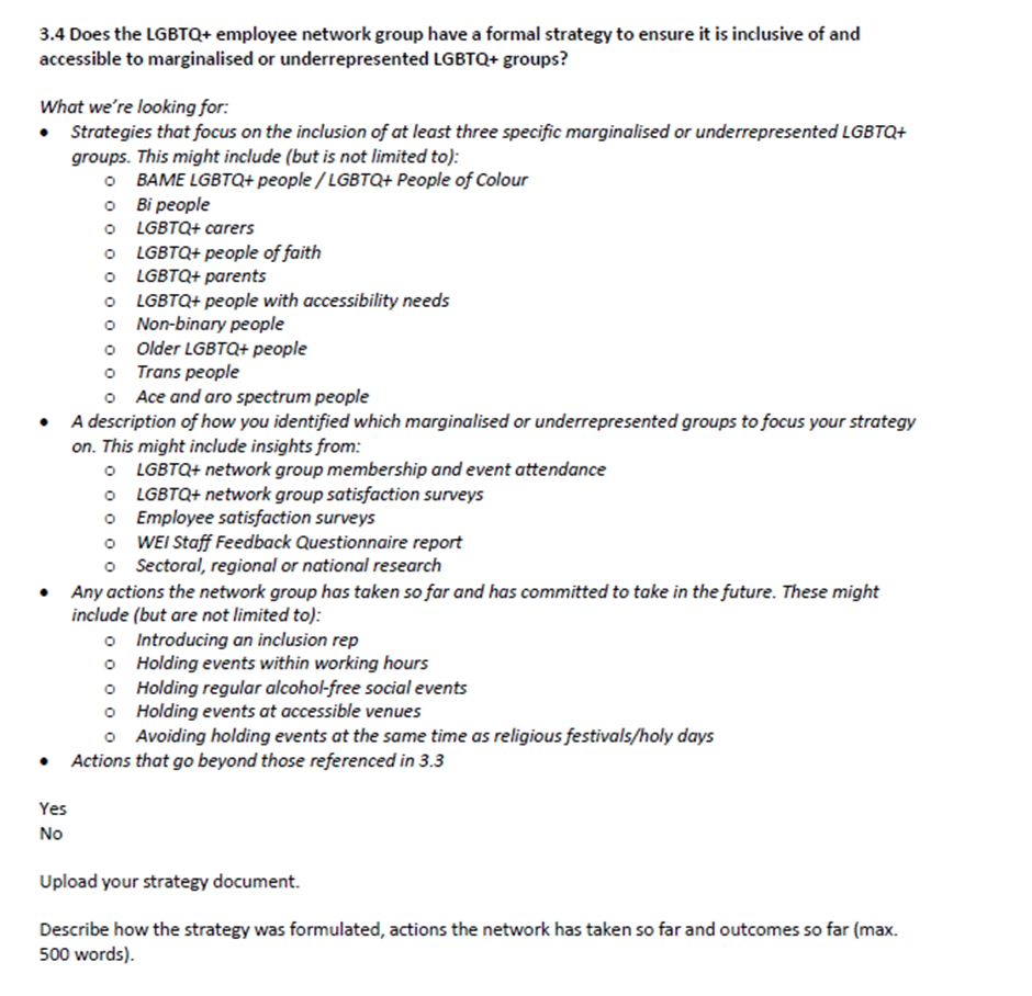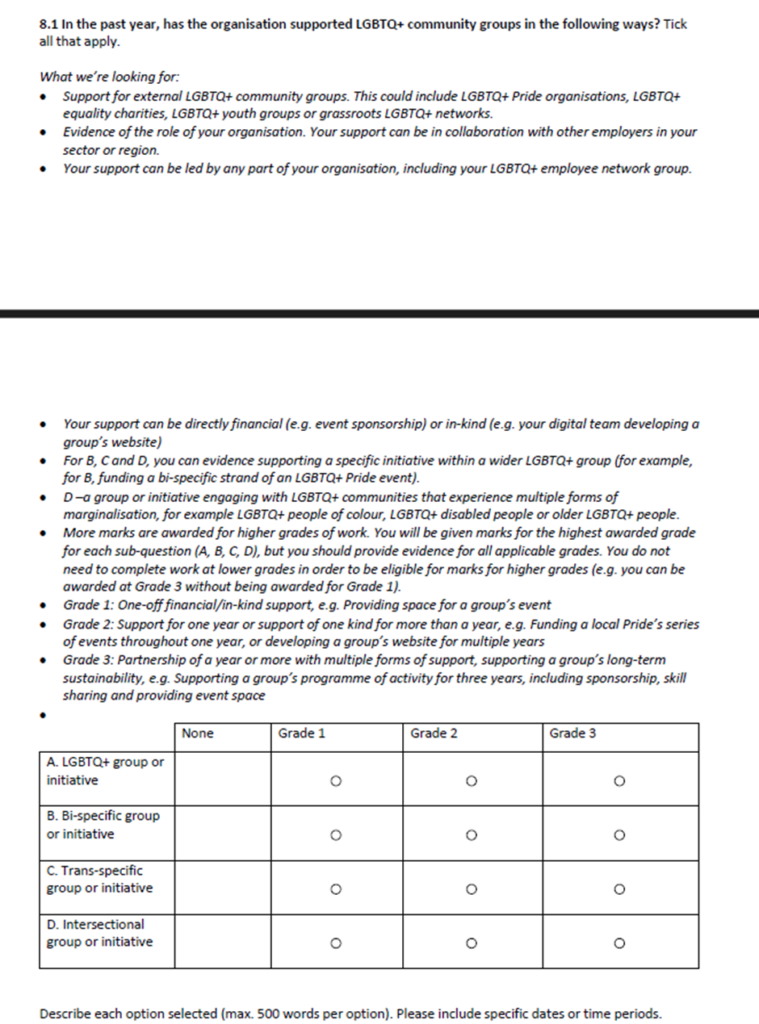 The Stonewall Workplace Equality Index (WEI) contains page after page of silly charts and growing numbers of bullets. Which bit is peak madness? “For B, funding a bi-specific strand of an LGBTQ+ Pride event”… Get your head around bullet point seven.
