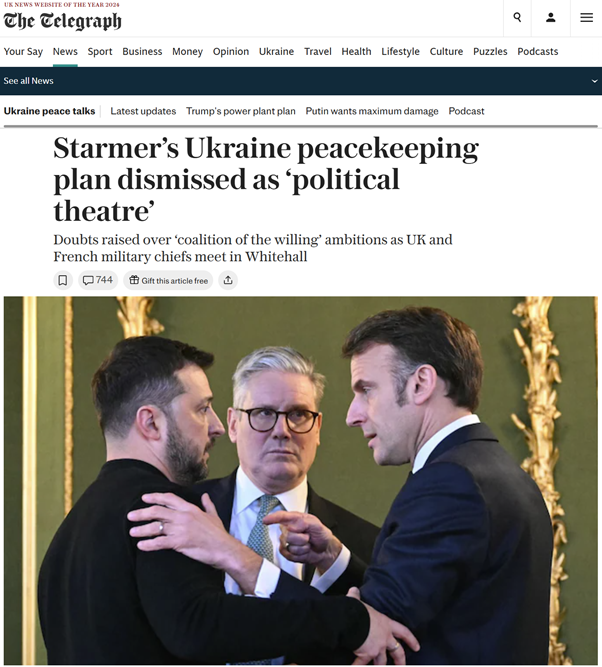 Alas, the mistake both officials made was to assume this was ever to be assessed in operational terms. Because as another, decidedly on-message Army source goes on to explain, the coalition is less about actuality than about “galvanising political signalling of our enduring commitment to Ukraine’s security”.