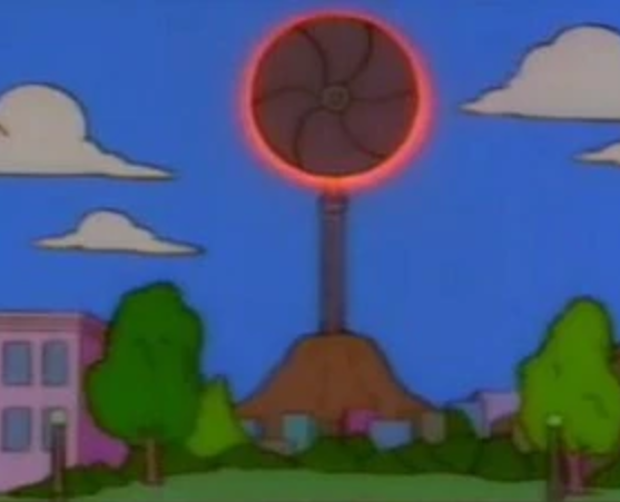 The Sun Blocker was a device developed by Charles Montgomery Burns. As the name suggests, it was created to blot out the sun outside, in order to ensure Mr Burns’s electricity was sold in a monopoly, covering Springfield in perpetual darkness otherwise.