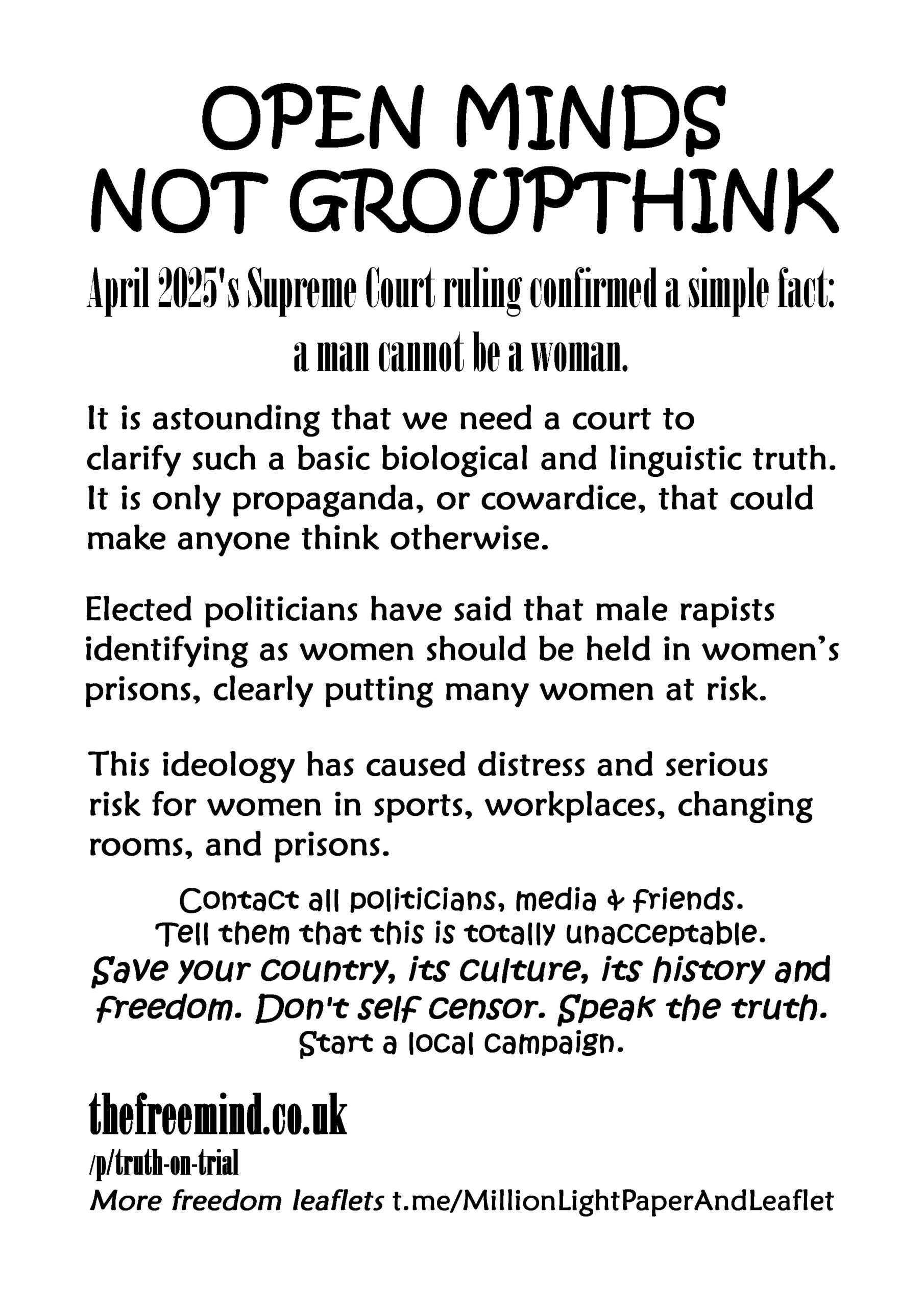 01a Open Minds Not Groupthink – latest leaflet to print at home, deliver to neighbours, forward to your bad MP & friends online. Start a local campaign. Deliver 100 leaflets a week (5200 a year). Over 300 leaflet ideas on the link on the leaflet.