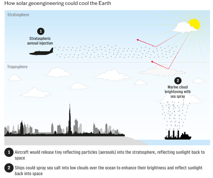 This week, we learnt it will spend £56.8 million on 21 “climate cooling” projects, which include looking into the logistics of building a “sun shade” in space and injecting plumes of salt water into the sky to reflect sunlight away from Earth.