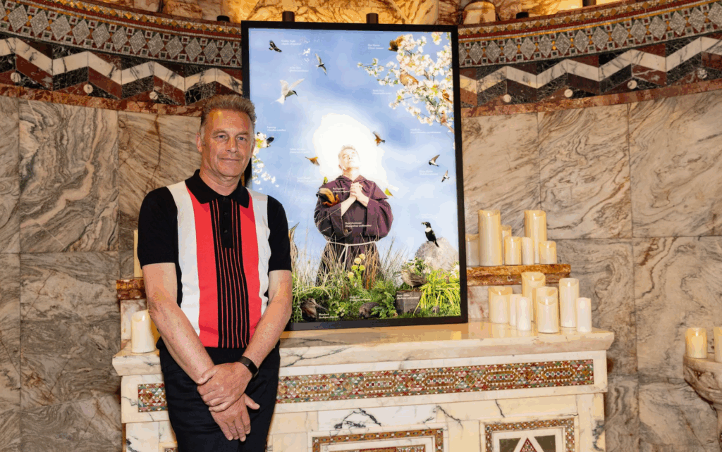 Chris Packham has posed as St Francis of Assisi in a portrait celebrating him as a ‘living saint’.
