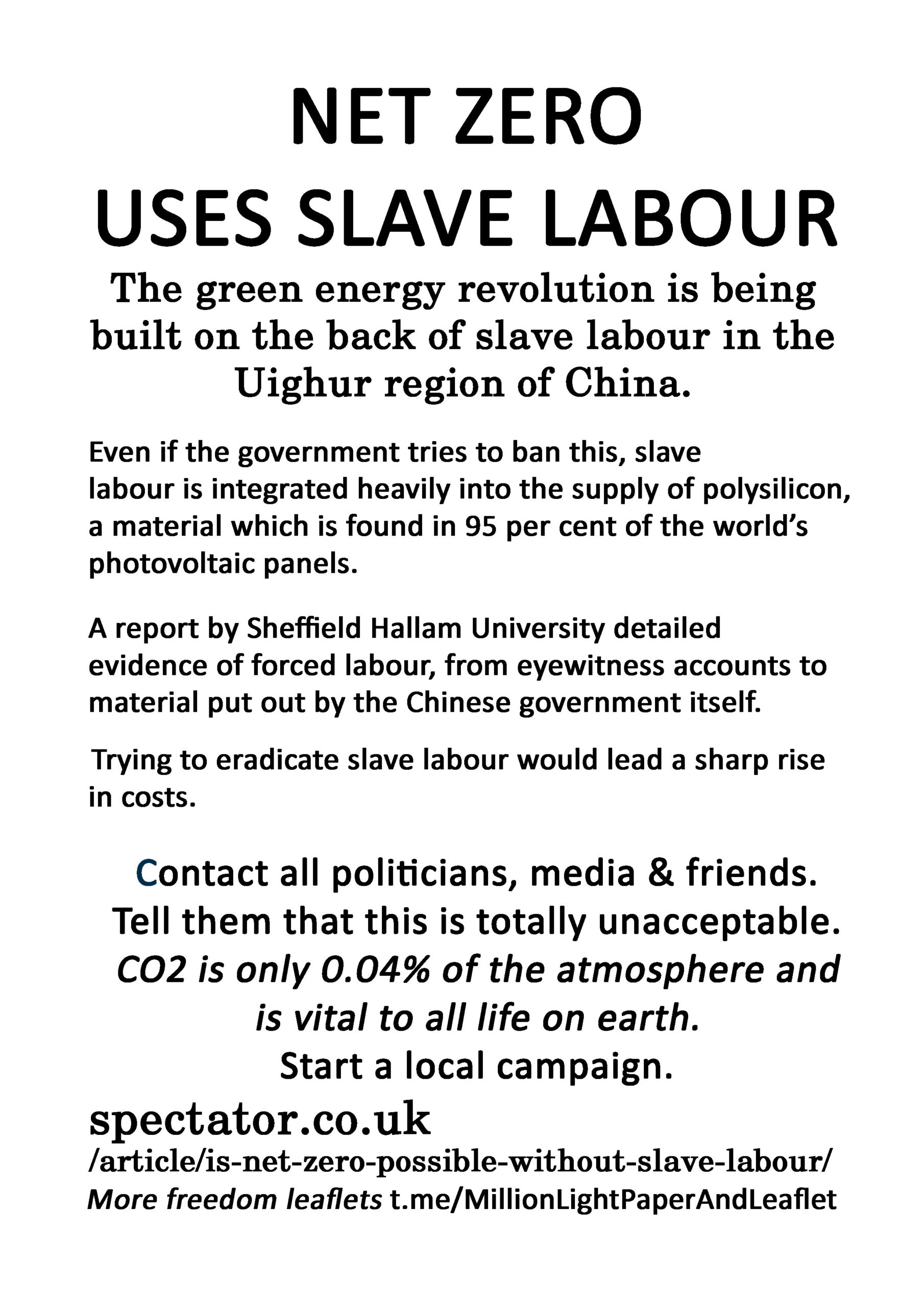 Net Zero Uses Slave Labour latest leaflets to print at home