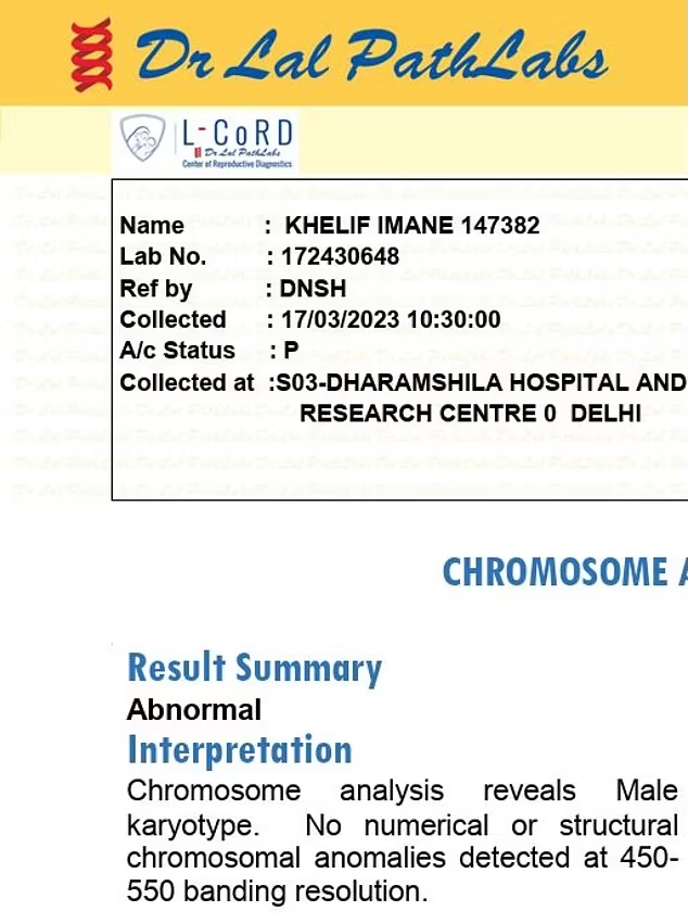 “Chromosome analysis reveals male karyotype,” the document, seen by 3 Wire Sports via Telegraph Sport, states.